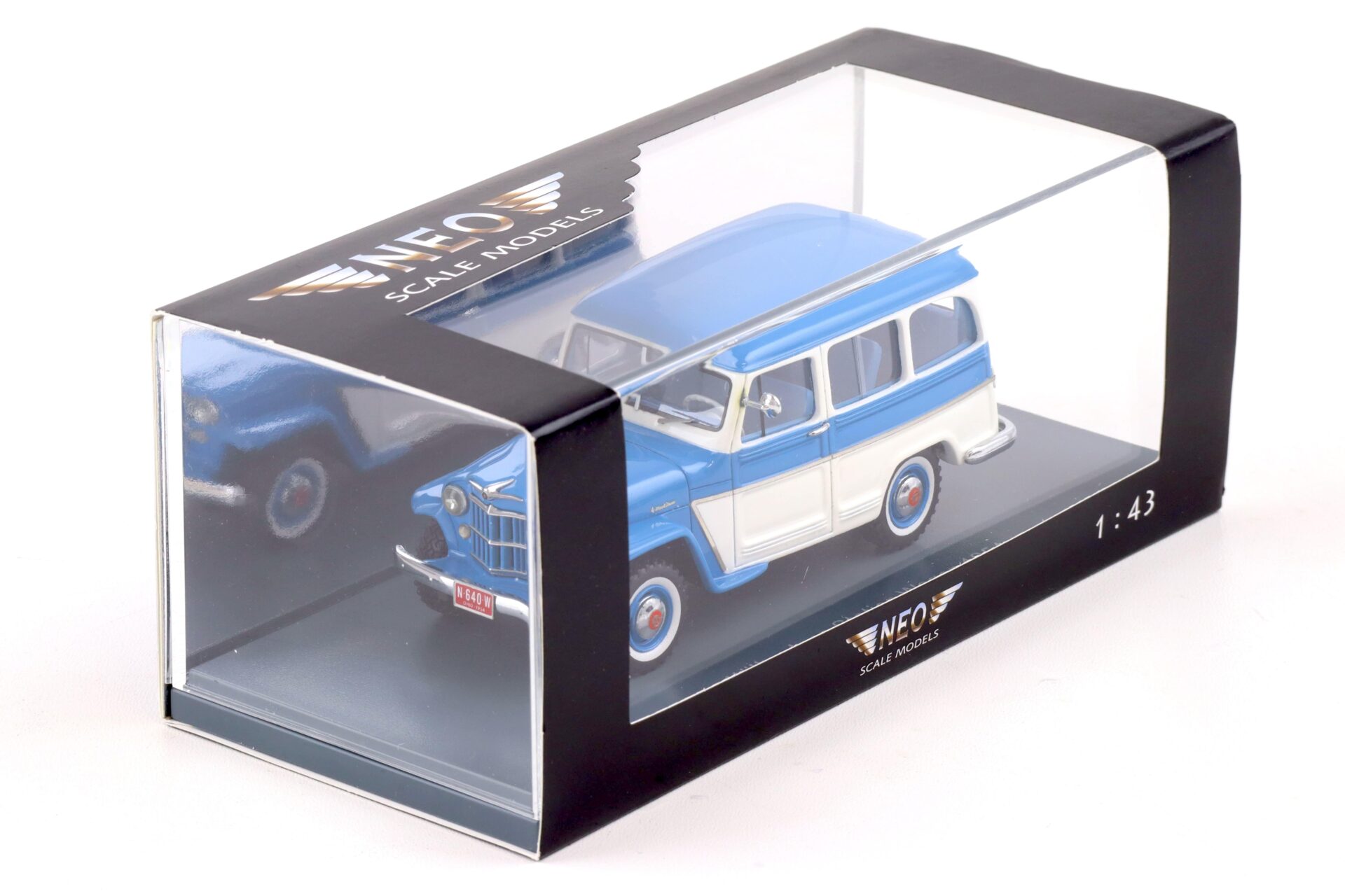 1:43 NEO Willys Jeep Station Wagon blue/ white 1954