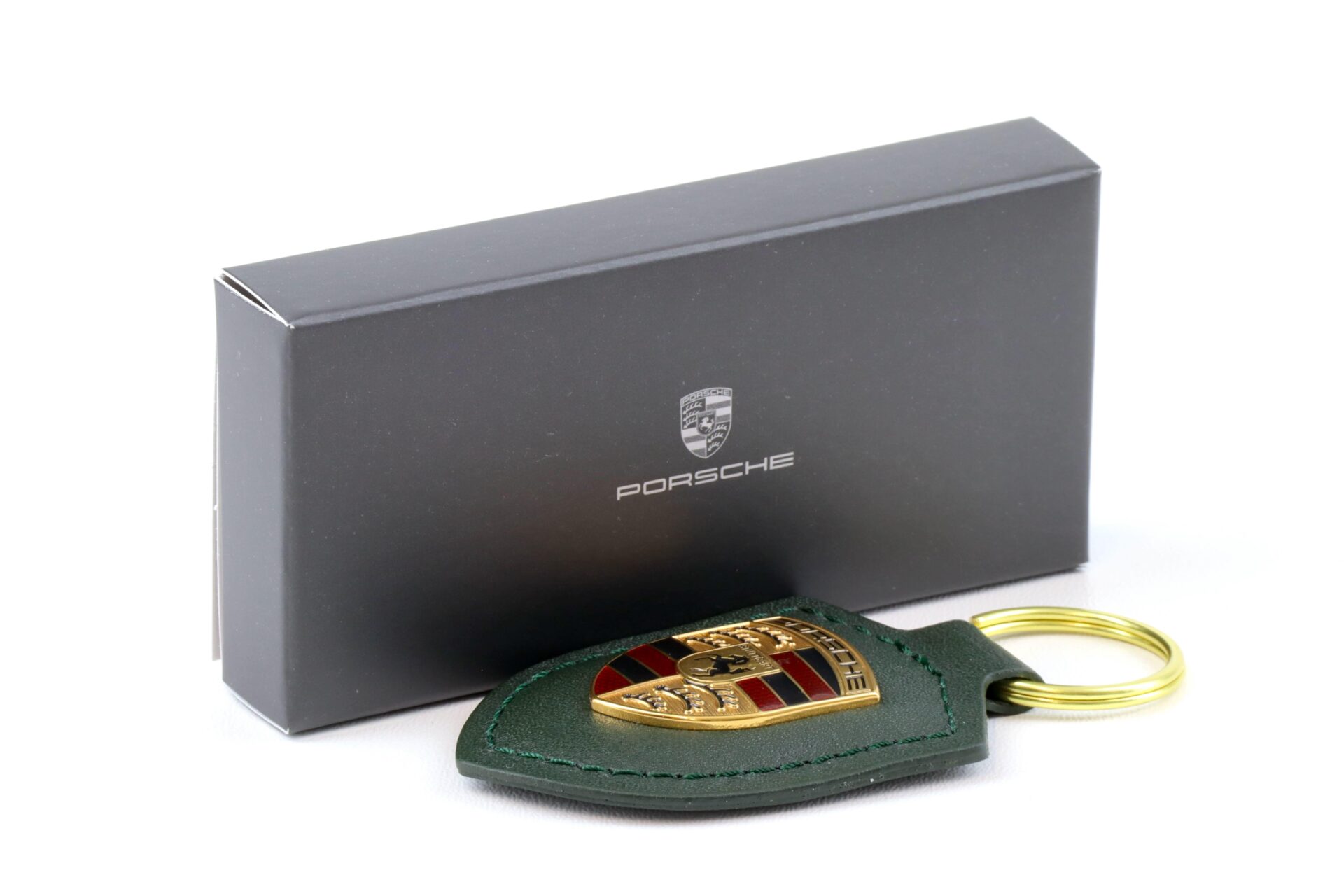 Llavero original Porsche Crest Keychain Cuero Roble verde WAP DEALER